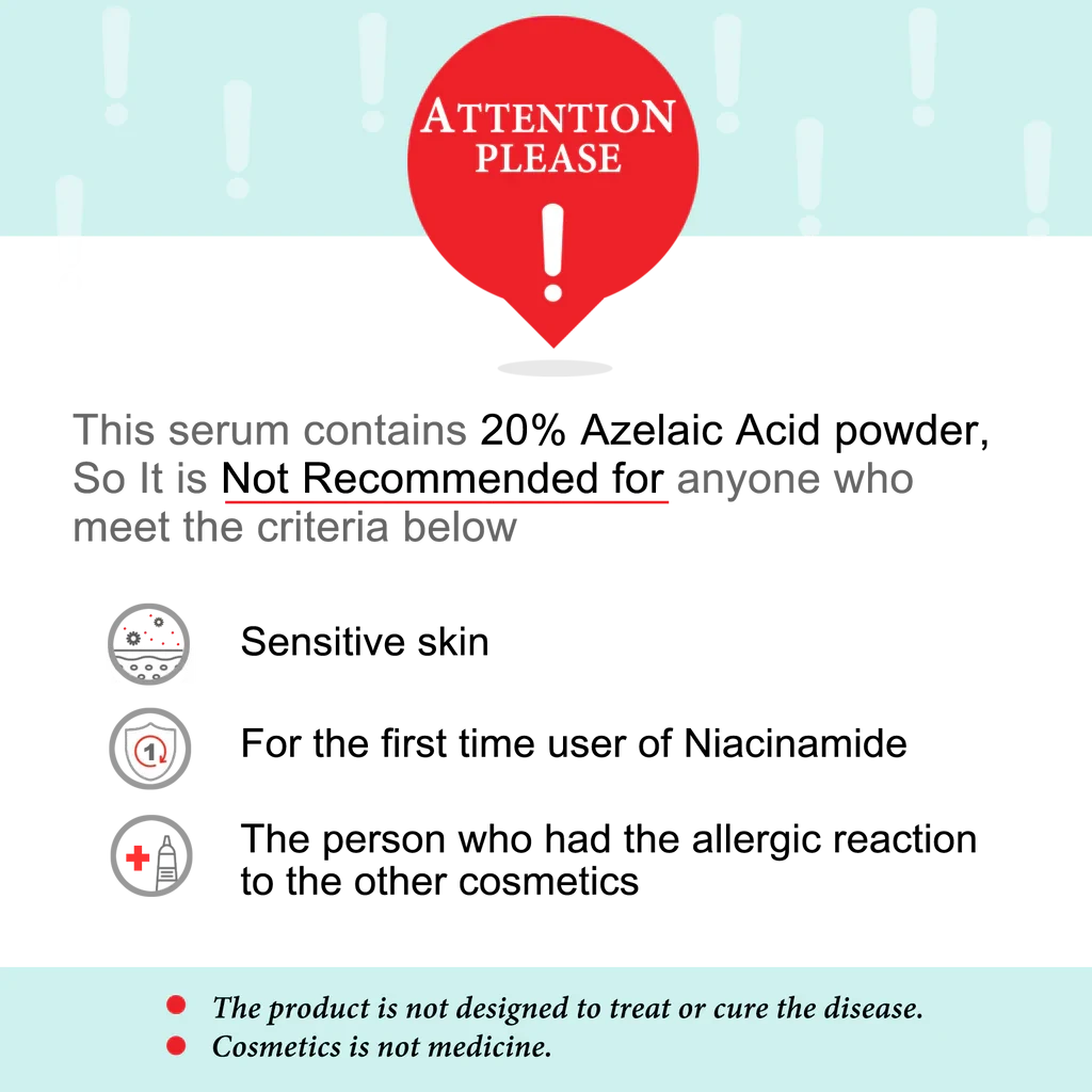 The product contains a high content of Niacinamide. We have experienced “Allergic reaction” and “face burning” in users with sensitive skin. Please test under the chin before use.
