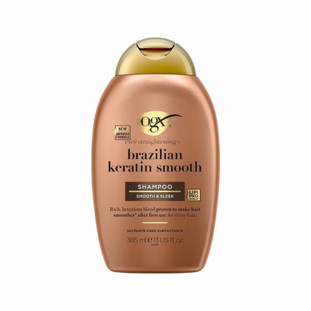 • SMOOTH HAIR THE WAY NATURE INTENDED: This 13-fluid ounce bottle of OGX Ever-Straightening + Brazilian Keratin Therapy Hair-Smoothing Shampoo hydrates strands, leaving them extra-glossy with a lustrous shine